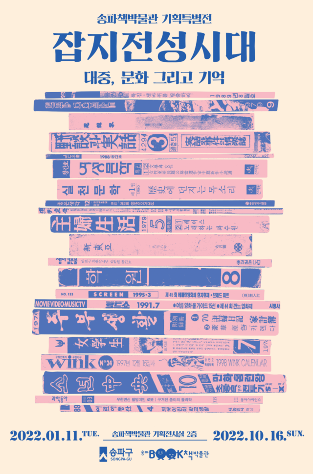 국내 최초의 근대 종합 잡지 <소년>을 비롯해 여성 교양 잡지 <여원>, 1970년대 최고의 인기를 누렸던 주간지 <선데이 서울>까지 대중의 관심과 사랑을 한몸에 받은 150여 점의 잡지를 한자리에 모았다. 종이 매체가 점점 사라지는 시대에 희미해진 기억 저편에 묻어둔 낡고 때 묻은 잡지들과 마주하는 기회를 통해 잡지가 전성기를 누렸던 시기를 보여준다.